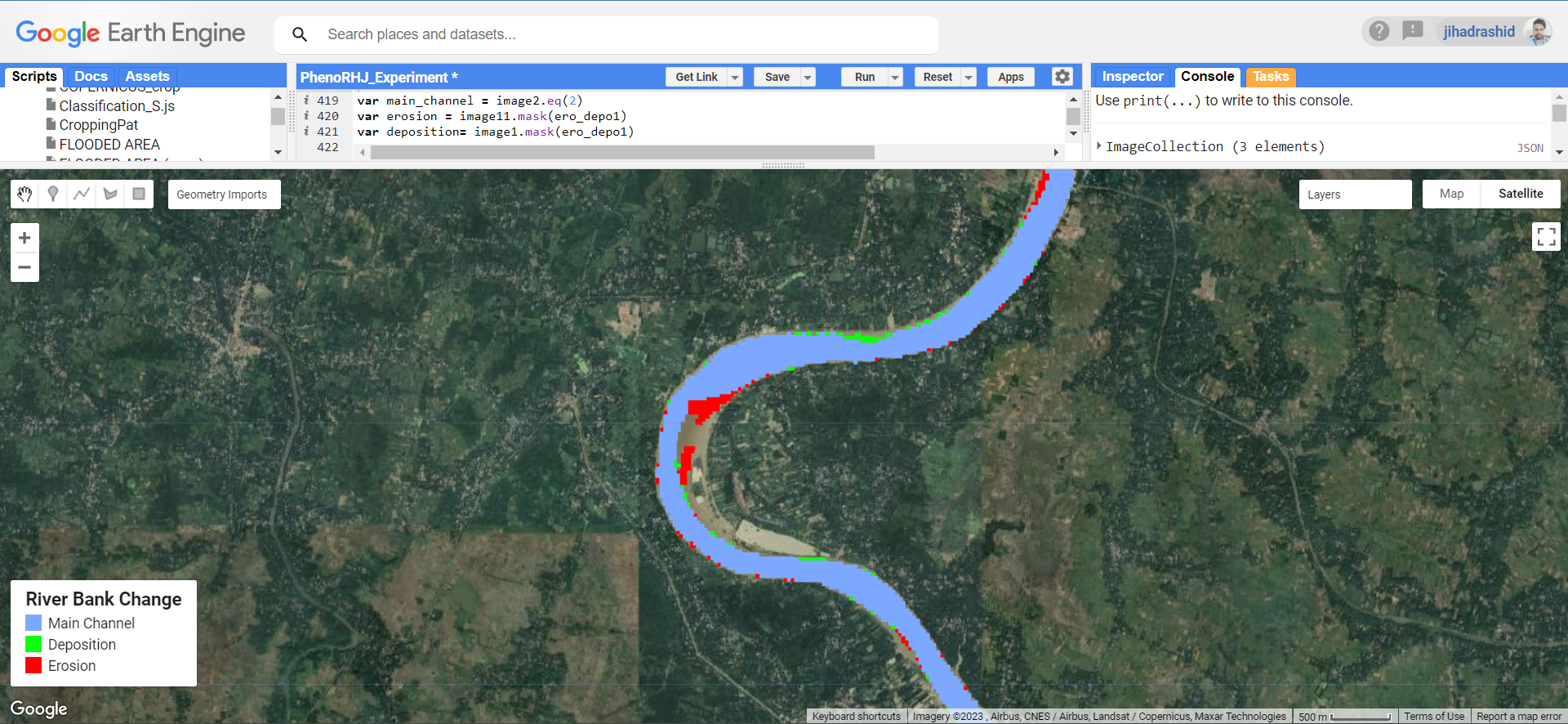 Extraction of rivers from Landsat images in the GEE platform. This task was aimed to measure erosion from medium-sized rivers of Bangladesh.